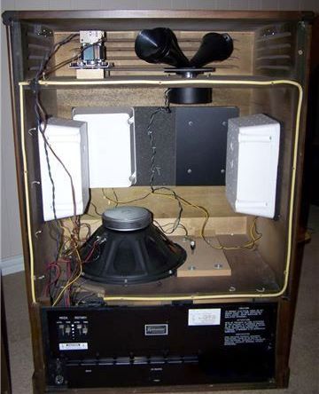 Deze Leslie is voorzien van een cross-overfilter en 4 elektronische versterkers voor een 6 x 9 Rotosonic drum, een rotary treble driver, drie (!) strakke keyboard speakers en een 15" bass speaker werkend op beide input kanalen en had een totaal van 280 Watt.