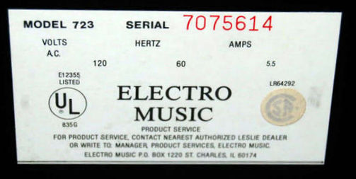 Leslie 723 is gebaseerd op de 720 maar kreeg een ander design, om qua uitstraling beter te passen bij het kerkorgel Hammond model 825 (zie hieronder)