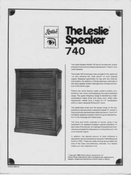 De 740 is een High-Power box met een normale Rotosonic drum en horn in de rotary afdeling, twee full-range stationary kanalen en twee auxilairy kanalen.