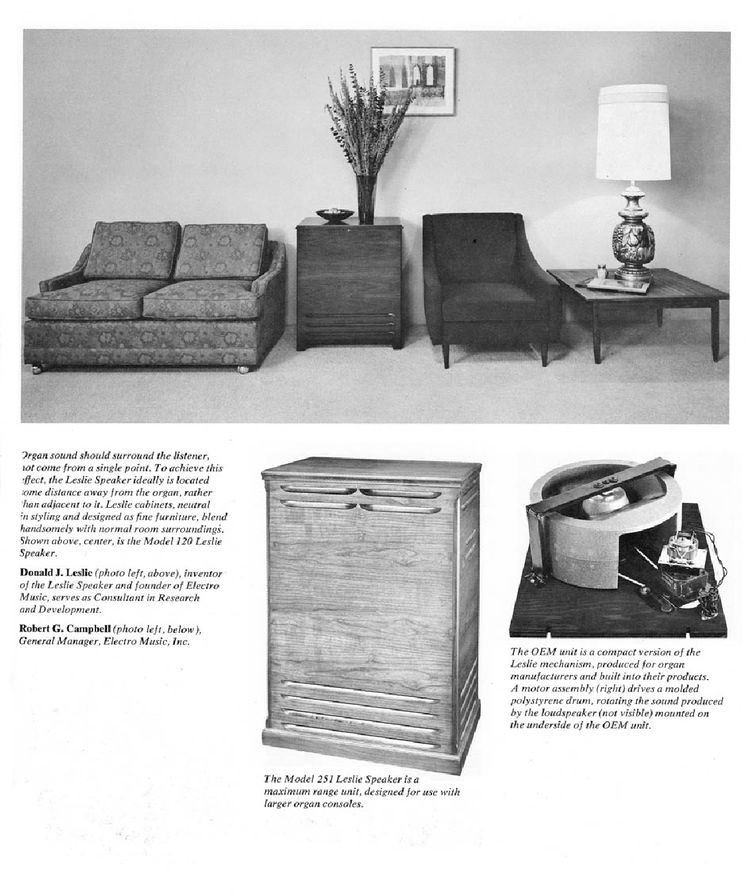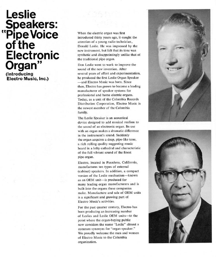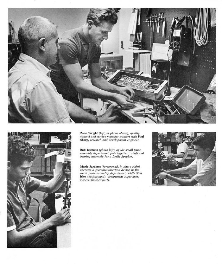 Een aantal jaren geleden kwam Electro Music uit met een brochure, waarmee een inkijkje geboden werd in de Leslie fabriek en een aantal van zijn werknemers werden belicht.