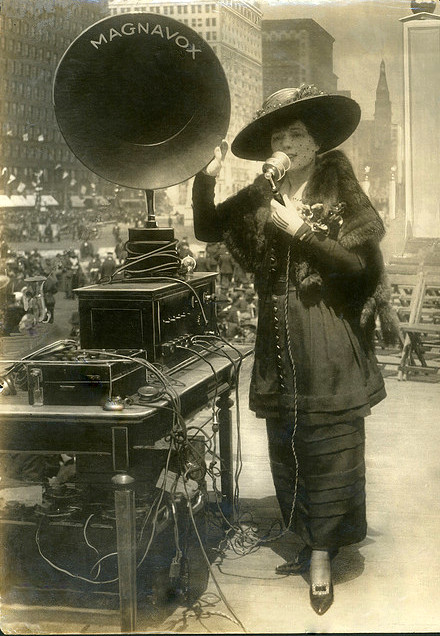Fritzi Scheff demonstrating Magnavox for Fifth Liberty Loan in New York City 1895