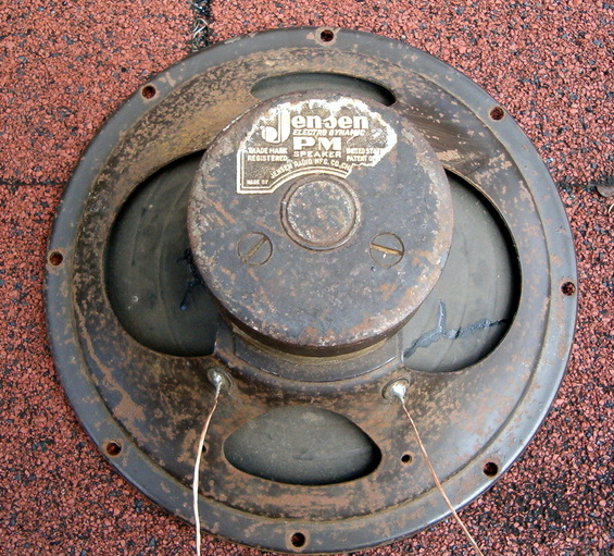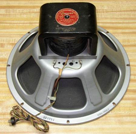 Jensen A12 electrodynamic speaker was used in most of the original Hammond tone cabinets. Overall view showing hermetically sealed field magnet assembly