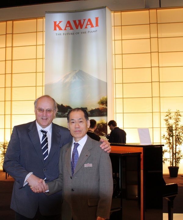 Mr. Katsuo Ogura, nu export directeur van Kawai Japan en voorheen directeur Kawai Nederland en directeur Kawai Europa Duitsland met Aart van de Beek op de Messe 2012