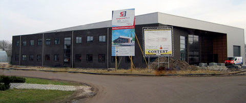 Het bijna afgebouwde nieuwe pand van Content aan de Marienhoef in Ermelo, kort voor de oplevering in 2009.