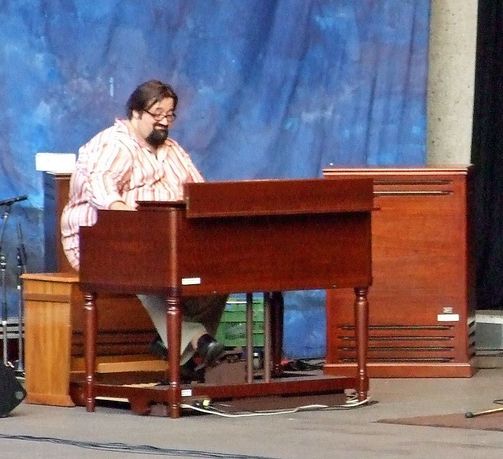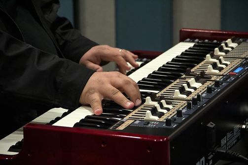 Hier speelt hij thuis op zijn A-102 met 145 Leslie.