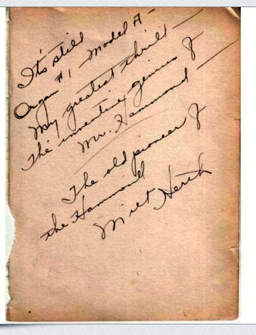Onderstaand een uniek en origineel door Milt Herth geschreven "ode" aan het Hammond-A - model van Laurens Hammond.